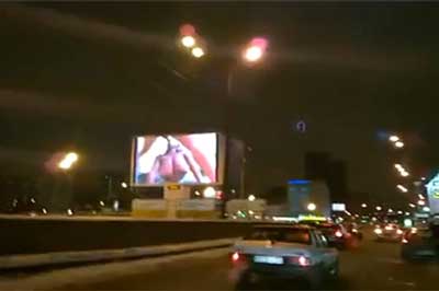 La BBC riporta la notizia di un hacker russo di 40 anni, Igor Blinnikov, arrestato e condannato ad un anno e mezzo di reclusione per aver fatto l’upload di un filmino porno su un cartellone videopubblicitario sulla trafficatissima circonvallazione di Mosca.